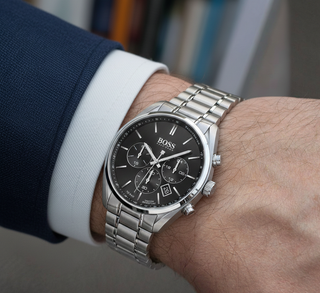 • Accessible Authority: The BOSS branding at 12 o’clock is a globally recognized signal of success. It projects a “closer’s mentality”—someone who is polished, professional, and results-oriented.
