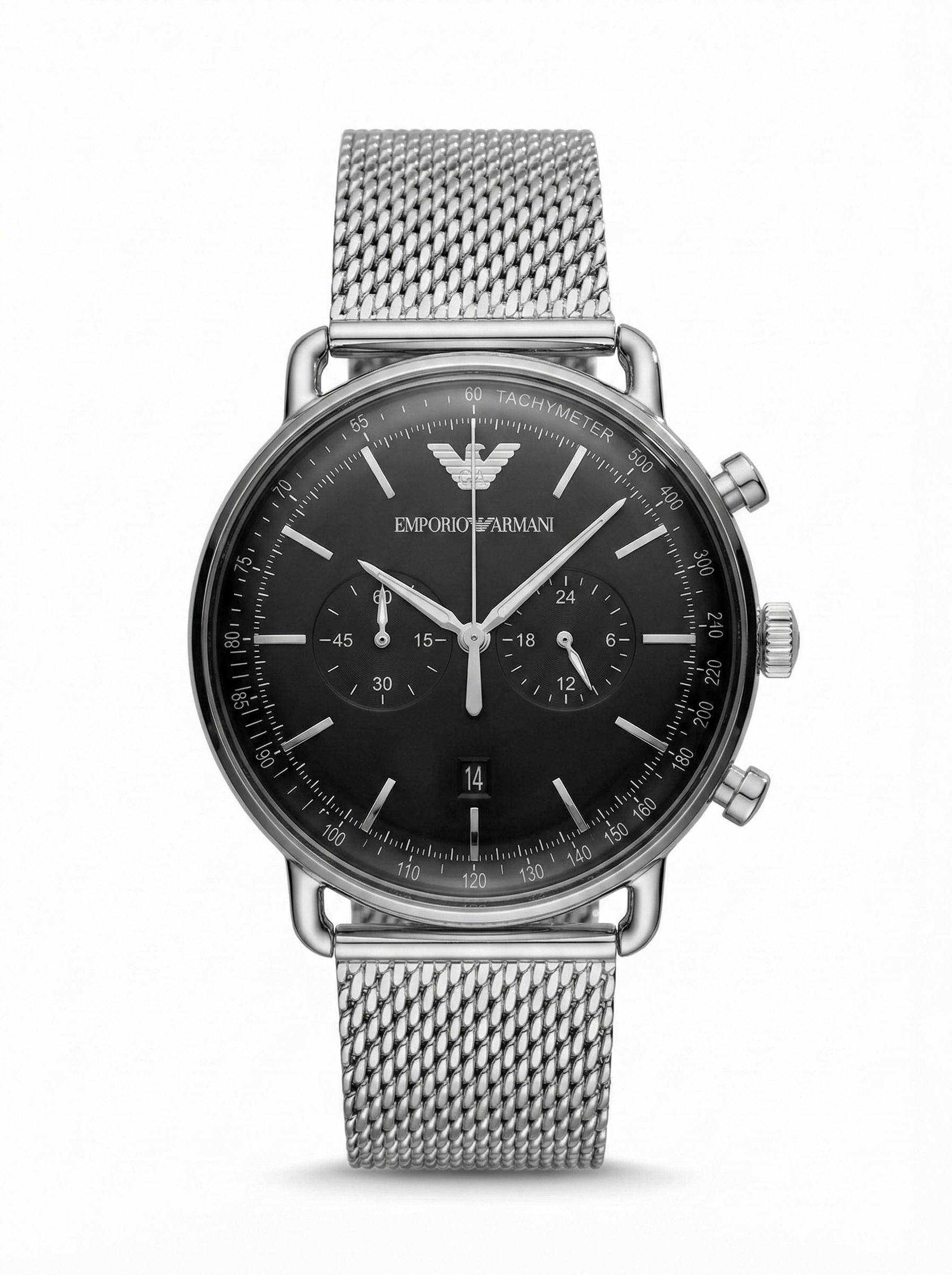Be the first to review “Emporio Armani Classic Chronograph, Stainless Steel Model with a black dial and mesh bracelet.”