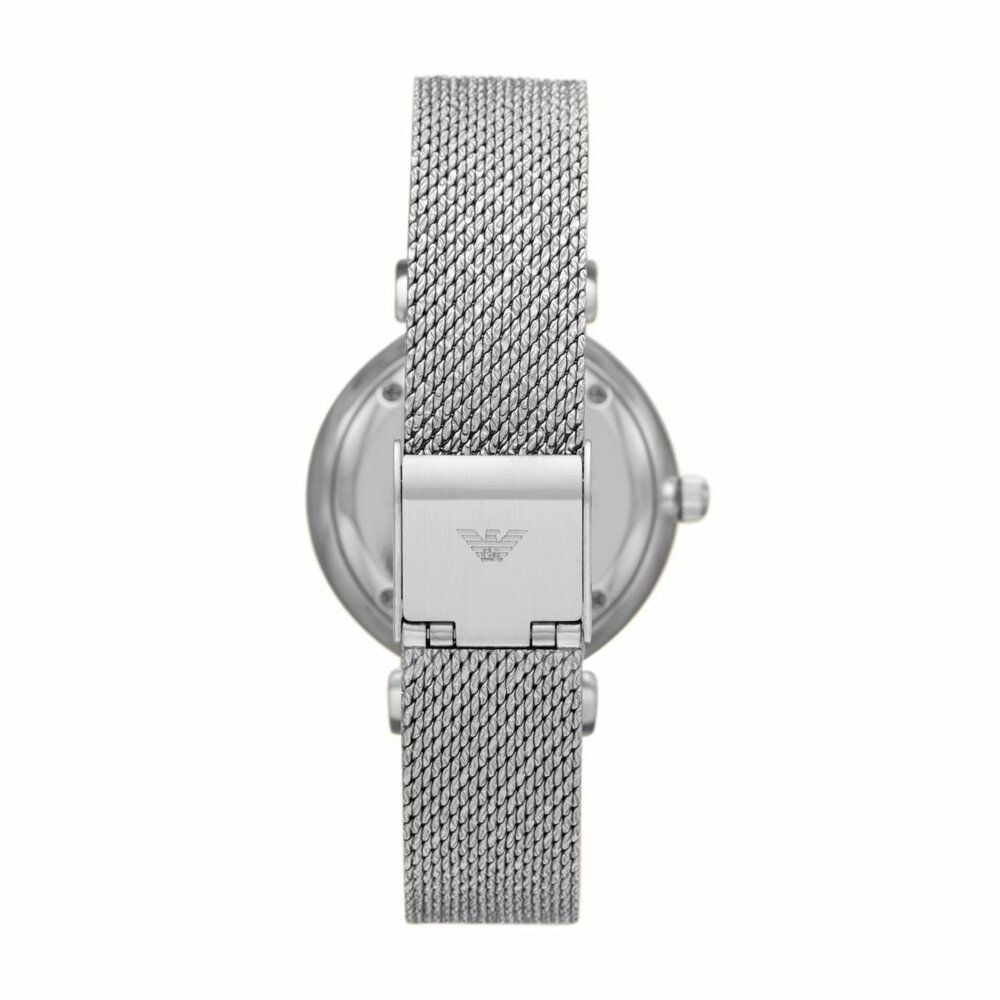 Emporio Armani Women’s Watch the Silver Model with a Mother of Pearl dial and mesh bracelet.