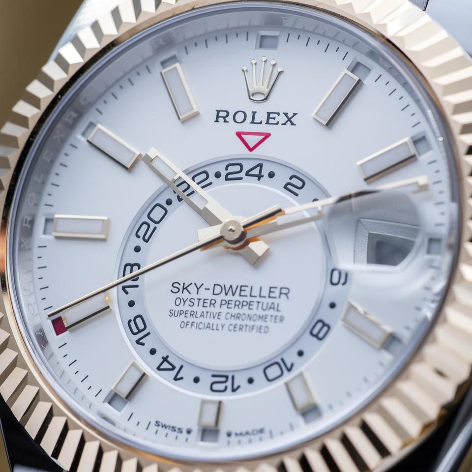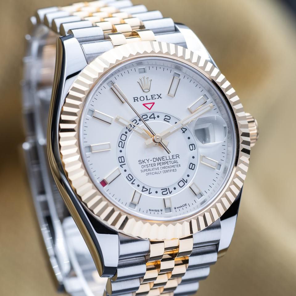 Case Engineering: The 42mm Oyster case in Yellow Rolesor (Oystersteel and Yellow Gold) is robust and waterproof. It signifies a blend of industrial strength and precious capital—a “wearable asset” in the truest sense.